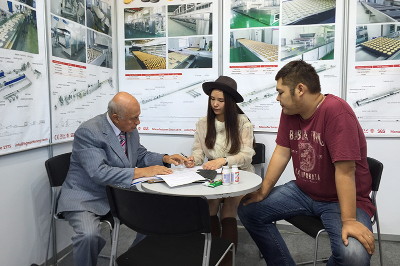 本届展会 HG 团队以 “全链条技术呈现” 为核心,展出从原料处理到成品包装的全套食品机械,涵盖烘焙设备、零食加工线及饮料灌装系统等核心产品。期间参与 “节约食品” 国际论坛,与联合国粮农组织行家及食品企业共同探讨减少损耗的技术路径,将国际先进的生产管理理念融入产品设计,进一步完善了设备的节能与废料回收功能。