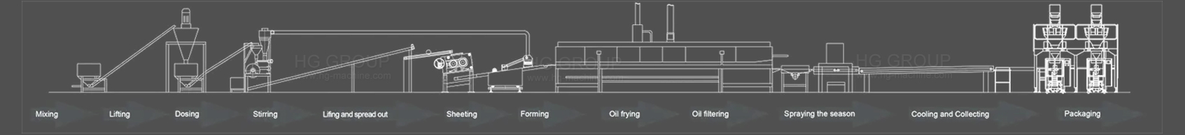 HG集团基于欧美技术,历时一年多研发这条全自动复合薯片生产线。该设备以马铃薯粉为原料,通过混合、压制、成型、油炸、调味,得到酥脆可口的复合薯片。它已成为当今食品制造商的首选投资项目。